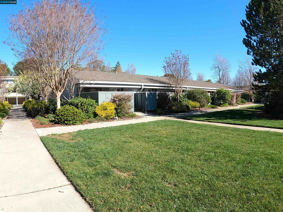 Great location for this single-level coop in Rossmoor. This level-in San Franciscan model has no stairs making it accessible for everyone. End-unit location and no one above or below means added privacy. The home looks out at a serene lawn setting and has both a fenced front patio and a huge private atrium providing you with lots of outdoor space. Inside the home you'll find two bedrooms and one bathroom with a spacious Living Room/Dining Room combo off the Kitchen. Skylight tube in bathroom gives you lots of natural light. The carport with added storage is very close and there's plenty of guest parking.