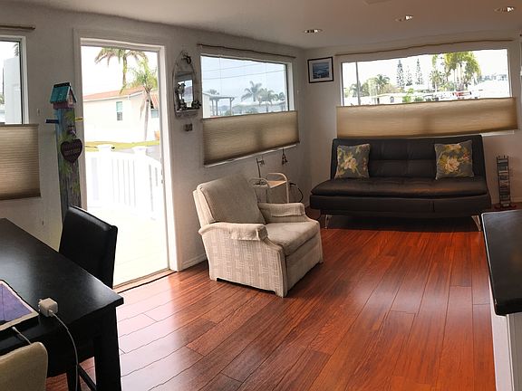 Easy living!!.....3 steps up into this Sleek and modern, beautifully updated home, which comes fully furnished....turn key ready. The 25’x10’ fabulous front deck is delightful for evening socializing. The covered back patio provides shelter for daytime relaxation or projects, with a gentle sea breeze flowing thru most days. It has a 2 year old state-of-the-art central HVAC unit with Nexia remote temperature control, and an Instahot water heater.....both are very economical. Sandpiper resort is located on a very narrow portion of Anna Maria Island....The Bay/intercoastal (with access) is less than 100 yards away, and Beach access is just across the street. This 55+ community offers activities: poker/bridge, aerobics, yoga, Thai Chi, bingo, shuffleboard, a community pool / dock, boat slips, clubhouse and more. this home comes with an ownership share in the co-op. Kindly see sandpiperresortcoop.com to learn more about the park. There is a free trolley every 20 mins that runs the length of Anna Maria Island. Fabulous dining opportunities, tons of outdoor Opportunities nearby...