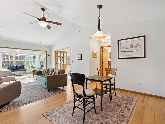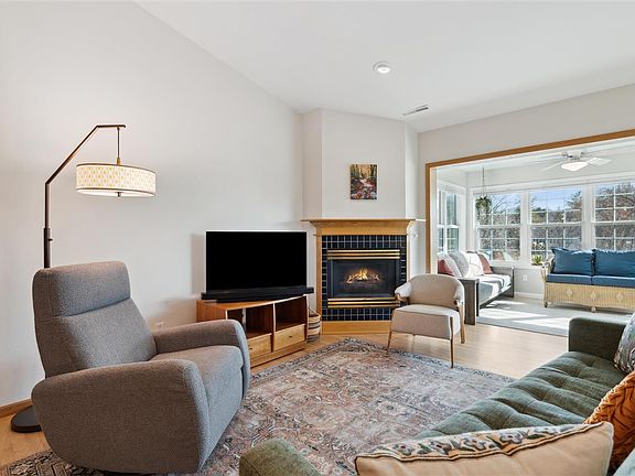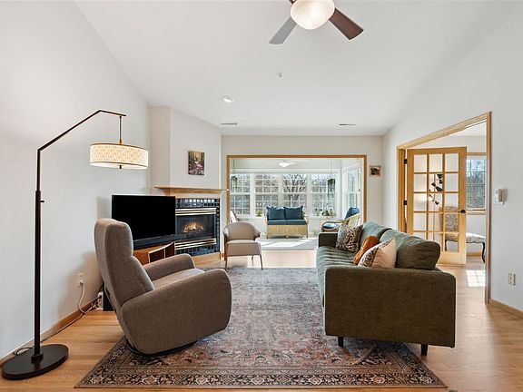 Beautifully cared for Hickory Trail condo. This unit has been updated to perfection. Top floor, vaulted ceilings with refinished honey oak floors and new paint throughout. Bedroom windows replaced with triple pane windows, new lighting and ceiling fan in primary. Enjoy the sunsets w/South facing corner unit at night and relax in the 4 season sunroom during the day. Open living room with gas fireplace, kitchen equipped with SS appliances and laundry room w/utility sink. New furnace and A/C just last year and newly added insulation in the attic space above! Building includes underground heated parking with 2 spots & storage, elevator, community room, and secure entry. Landscaping and snow removal is also covered by HOA. Perfectly located between Hickory Hill Park and Calder Park!!