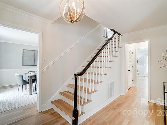 Beautifully updated traditional home in the heart of Carmel Woods, nestled on a large private wooded lot with a flat grassy area for outdoor play. Minutes from SouthPark with all its amenities and the vast array of highly rated schools. Inside, you are greeted with new white oak hardwoods that lead upstairs to four generously sized bedrooms that have been freshly carpeted. The newly remodeled bathrooms shine with marble floors, gold faucets, double vanity and frameless glass shower. The lower level boasts formal living and dining areas, and a warm family room with fireplace that leads to a screened porch and deck area where you can enjoy the peace of the outdoors. The kitchen has granite counters, new stainless-steel appliances and a breakfast area that shares the same scenic views. A half bath and laundry area lead to the attached double car garage complete with a workshop area – a rare find! A new roof and exterior makeover complete its eye-catching curb appeal.