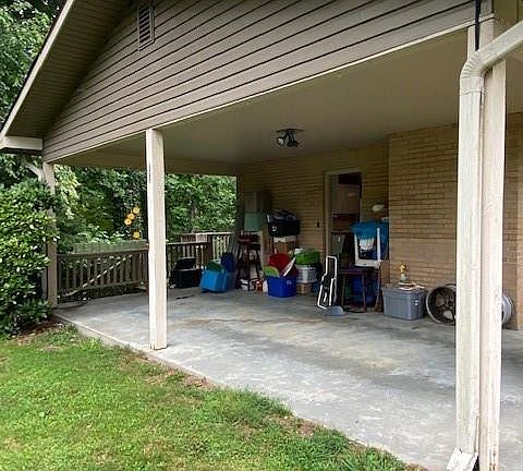 Nice brick home sitting on 1.8 acres off Kim Miller Road in Lake Toxaway. Large level front yard, partially wooded back yard with mature trees and a carport off the kitchen entrance makes it great for unloading groceries. Great location only about a mile from the post office and a 5 minute drive to TC Henderson Elementary. 3 bedrooms, 2 baths on the main level and partially finished basement would make a great rec room and has a bonus garage area. The home has mini split for heating and air, a propane gas inserts and gas fireplace in the living room on the main level and a gas fireplace in the basement. Kitchen and dining are open with French doors to a back deck. If you're looking for a nice starter home this is it!