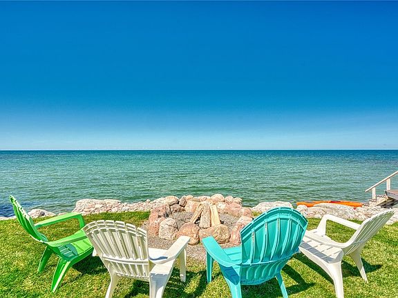 **100 FEET OF LAKE ONTARIO SHORELINE!** METICULOUSLY MAINTAINED property w/QUALITY CRAFTSMANSHIP & THOUGHTFUL UPGRADES!! Designed to maximize LAKE VIEWS, enhance WATERFRONT ENJOYMENT, and support a LOW MAINTENANCE lifestyle! CURB APPEAL!! SET BACK off Lake Road! Blacktop driveway w/circular turnaround courtyard, framed by custom brick columns and steel chain railings! COVERED FRONT PORCH opens to PAVER PATIO. *COBBLESTONE accent wall forged from local lake stone! *STRAIGHT-THROUGH VIEWS of Lake Ontario! OPEN CONCEPT!! Bright, open family room! *STONE WOOD-BURNING FIREPLACE is GAS CONVERSION-READY! w/stainless flue & gas line in place. EXPANSIVE WINDOWS & OVERSIZED SLIDING DOOR showcase PANORAMIC LAKE VIEWS!