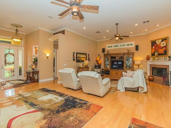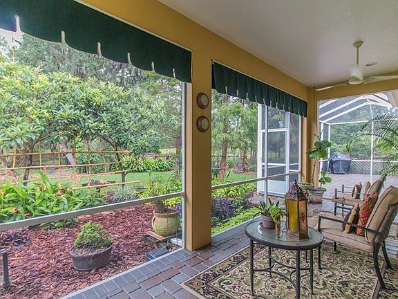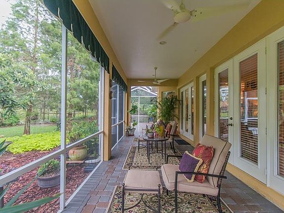 Walking into this home, is like walking into the scene of a movie! The interior is exquisite: 12' ceilings, tray ceilings, crown molding, plantation shutters, wood flooring, and custom fixtures throughout. The bedrooms feature walk-in closets with custom built shelving. The guest suite even has a large built-in overhead storage unit. The exterior boasts canvas awnings at entryways as well as a roll-up style awning in the 15x28' screened lanai. These original owner's had the home built and didn't cut any corners. The windows, even the transom's, are thermal insulated windows. The garage isn't your standard garage either, it's stucco finished. Will need proof of funds prior to showing because we know you'll fall in love!