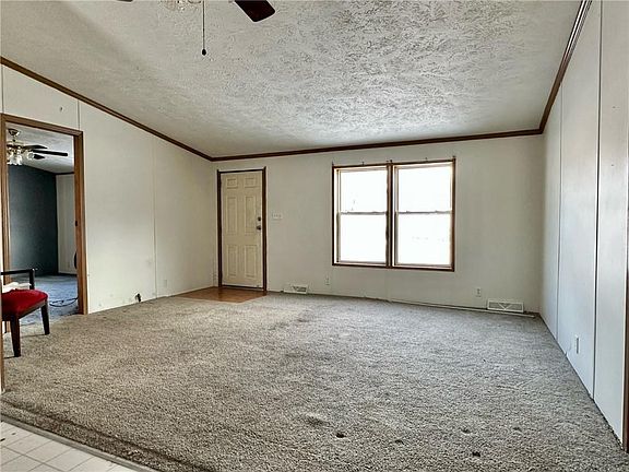 Great location with large yard and priced to sell! Come enjoy the quiet lake neighborhood with this cozy manufactured home. With everything all on one level, this home features 3 bedrooms, 2 bathrooms, living room, dining room, kitchen with stove, and laundry room. Other details include natural gas forced air furnace, central air, concrete front porch, and side porch off mud/laundry room. Enjoy the amenities of Lake Trenton, including a dock, swim beach, and boat ramp.