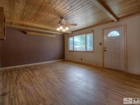 HOME CONTINGENCY - A 72 HOUR RELEASE. Darling home located on Carson City's popular Westside. This 3 bedroom, 1 bath home has interior cabin appeal with hardwood flooring, knotty pine doors and T & G ceilings. The home has recently had renovations which include the following new items: roof, exterior paint, furnace, water heater, electrical panel, French doors, front and garage man doors, refrigerator, washer, dryer, stove, portable microwave, kitchen sink, faucet, and new laminate flooring in the kitchen. The crawl space has a new vapor barrier installed. The bedrooms are nicely sized and all include ceiling fans. The 3rd bedroom is presently being used as an office, but can easily be converted to a bedroom or even a dining room. Use your imagination! The large yard is ready for your personal touches.