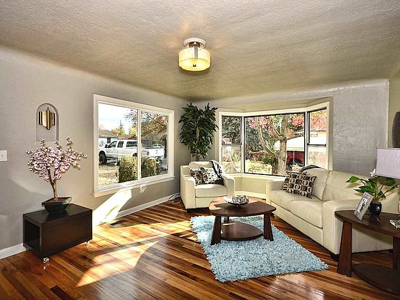 Art Deco bungalow sitting on a sweet lot in the North end. Stylish remodel with metallic tiling & in period backsplash, retro modern lighting, new stainless appliances, hip countertops with chrome edging. Huge master with en suite bathroom & triple closets. Gleaming refinished hardwoods, new plumbing fixtures, paint, & carpet in bedrooms, & light flooding through oversized bay windows. Private backyard haven with old growth trees, covered patio area, 2 large storage sheds, & parking for all kinds of toys/RV