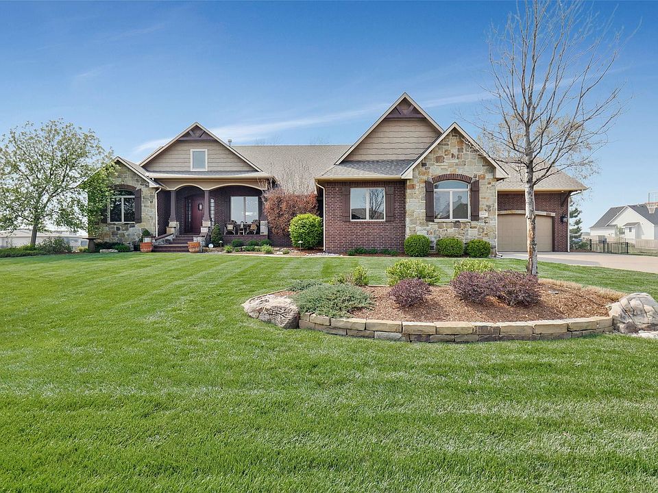 Your own piece of paradise! This one owner custom home has been meticulously cared for and has upgraded features and amenities at every turn. 2601 Paradise is located in Emerald Bay Estates which is situated around 100 acres of water which allows boating, skiing, swimming & fishing and offers a neighborhood clubhouse, pool, basketball, pickleball & beach volleyball courts. Starting with the professionally-designed manicured landscape you will see this is not your typical home. Large corner lot, oversized porch, Hard to find 4+ car garage and the stone & brick facade add to the homes curb appeal. The warm & inviting entryway features soaring ceilings, beautiful wood beams and a wrought iron chandelier welcoming you into the open floor plan, split-bedroom homes boasting over 4,500 sqft. Special features in this home include a beautiful stone fireplace, gorgeous kitchen with wood barrel ceiling, a gas stove, granite countertops & spacious walk in pantry, an enclosed 3 season room overlooking the fabulous backyard, laundry room with a window, a beautiful primary suite with the most amazing hammered copper stand alone tub and a movie theater to beat all others!