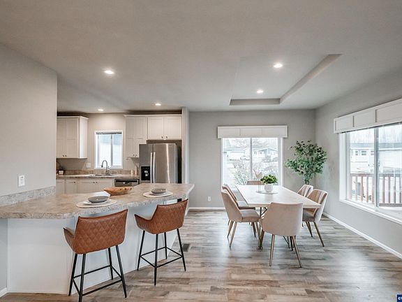 Welcome home to this rare find! NEW roof w/10 yr. warranty, 2019 single-level home is tucked away in a quiet location in the North Star Park. Thoughtful layout w/ spacious living room and combination dining area w/bar is designed with gathering & ease of living in mind. Spacious primary suite & adjacent bathroom w/ walk-in closet and additional storage. New carpet, laminate. Oversized stick-built garage with plenty of storage and hobby room. Patio in backyard perfect for BBQing.