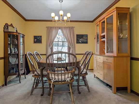 Location, Location, Location! Eagle Ridge!! Make this house your home. Enjoy sitting on the front porch of this two-story, 4 bedroom, 2.5 bathroom house with a 3 car garage. The tiled kitchen features a big island with inlaid baking marble and a 2020 dishwasher. The family room, which is open to the kitchen, features a wood burning fireplace with a gas starter, built-ins, and a lovely bow window overlooking the backyard and koi pond. Upstairs features a large master bedroom with an attached full bath with a soaker tub and a separate shower/toilet room. 3 additional bedrooms and a full bathroom complete the upstairs area. There is a whole house fan to cool off the hot summer nights. The basement offers a finished family room area, a workshop/ possible extra bedroom, no egress, and a storage area. The laundry room is located on the main floor and has a convenient laundry shoot from the 2nd floor. Furnace/AC, 2011. Water Heater, 2013. Roof, 2006. The seller is offering a flooring allowance so that the new owners can update the carpet to their liking.