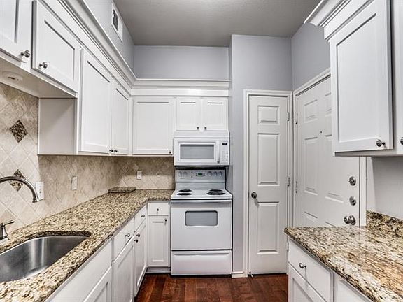 Welcome to this adorable and affordable one story property on the first floor. Well maintained with wood floors in entry, dining and kitchen. Spacious living room with fireplace open to entry and dining area. Awesome kitchen features granite countertops, stainless sink, electric range, microwave and fridge. Charming master suite includes vanity table and large walk-in closet. Beautifully updated bathroom with recently replaced walk-in shower with sliding glass doors, new tile flooring and granite countertop. Inviting backyard with covered patio. Complete package includes front and backyard lawn maintenance service plus trash. One car garage is attached to the property for convenience and safety.
