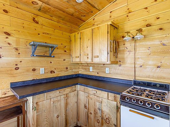 - Description: Combined w/ Dining & Living Room. Custom cabinets made w/ leftover wood, double gas light above 4 burner gas cook stove, 5" insulation in floor