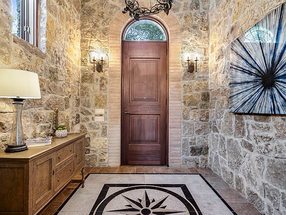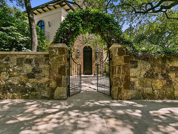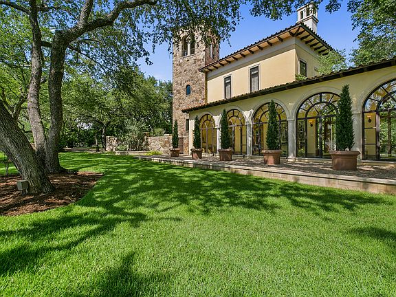 Villa Sollazzo ... Home of tradition, family, history and love! This majestic Italian inspired Villa was exquisitely built in a secluded setting among lush and pristine landscaping, offering complete privacy and total relaxation. Upon entry in this authentic villa, you step through the doorway into a 50 foot tall tower, and onto a marble mosaic floor masterpiece. Entrance into the formal living where sunlight is filtered through windows lining the gallery walls. Grand stone columns separate the formal living and dining, and serving guests is made easy by the hidden butler's pantry connecting the dining room to the galley. The gourmet kitchen is open to the family room and breakfast nook, impressive for extraordinary entertaining. An expansive sunroom filled with natural light invites you to appreciate the meticulously maintained grounds. Down the corridor, there is a private guest suite with its own living, bedroom, bath and kitchenette, all overlooking the native gardens. The grand staircase transcends you upstairs to a complete library, perfect for your book collection and heirlooms. It also allows access to the tower for watercolor sunsets. The master suite awaits you with a private study, sunroom, and a luxurious bath with spacious his and her closets. The second floor is completed with an additional two oversized bedrooms, game room, and utility room. The backyard of this magnificent estate offers an opulent lifestyle, native to Italian Villas. The manicured gardens and stone walkways guide you throughout your outdoor experience. A pergola and lounge showcases the pool and is brought to life with water features and exceptional night lighting that hangs from the beautiful oak trees. Enhance your farm to table experience with raised garden beds for fresh vegetables, a chicken coop, and a garden house. Dining alfresco is made easy with an authentic brick fire pizza oven and grille which offers an ideal spot for meals, and perfect for appreciating the charming views of the garden. Villa Sollazzo sits on almost one and a quarter acres and includes a three car garage with workshop/hobby area and extra storage. Together, renowned Architect Charles Travis, and premier builder Dwight Dow, built this magnificent property in 2001. Reminiscent to prominent aristocratic Italian families, Villa Sollazzo will make you feel like true royalty!