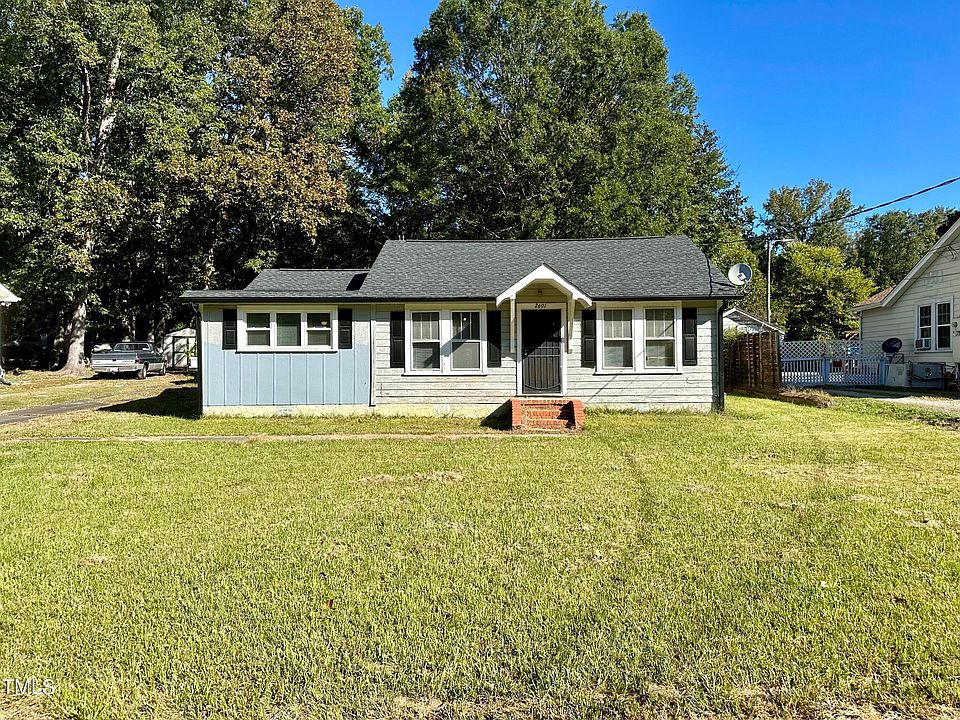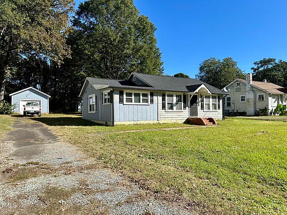 Charming ranch home on large lot! Updated kitchen with breakfast room. Primary bedroom has a spacious sitting area. Unique built-ins throughout for extra storage. Sunroom with backyard views and plenty of natural light. Detached one car garage and large storage building. Home is missing carpet & in need of some repairs. No HOA. Convenient to Downtown Durham & NCCU (3 miles), Duke University (8 miles), Research Triangle Park (8 miles), Southpoint Mall & RDU Airport (13 miles).