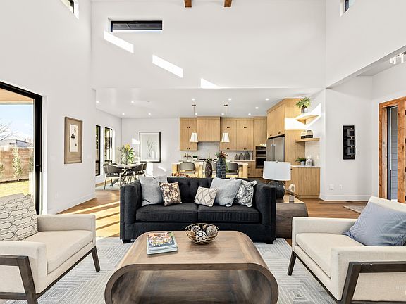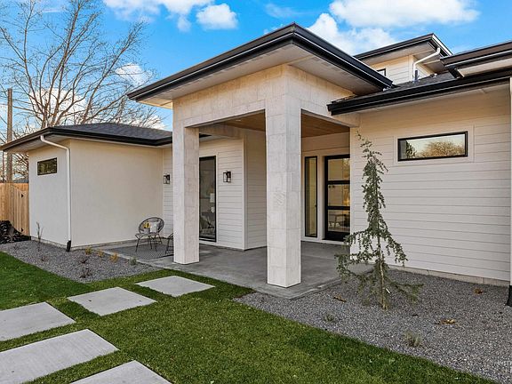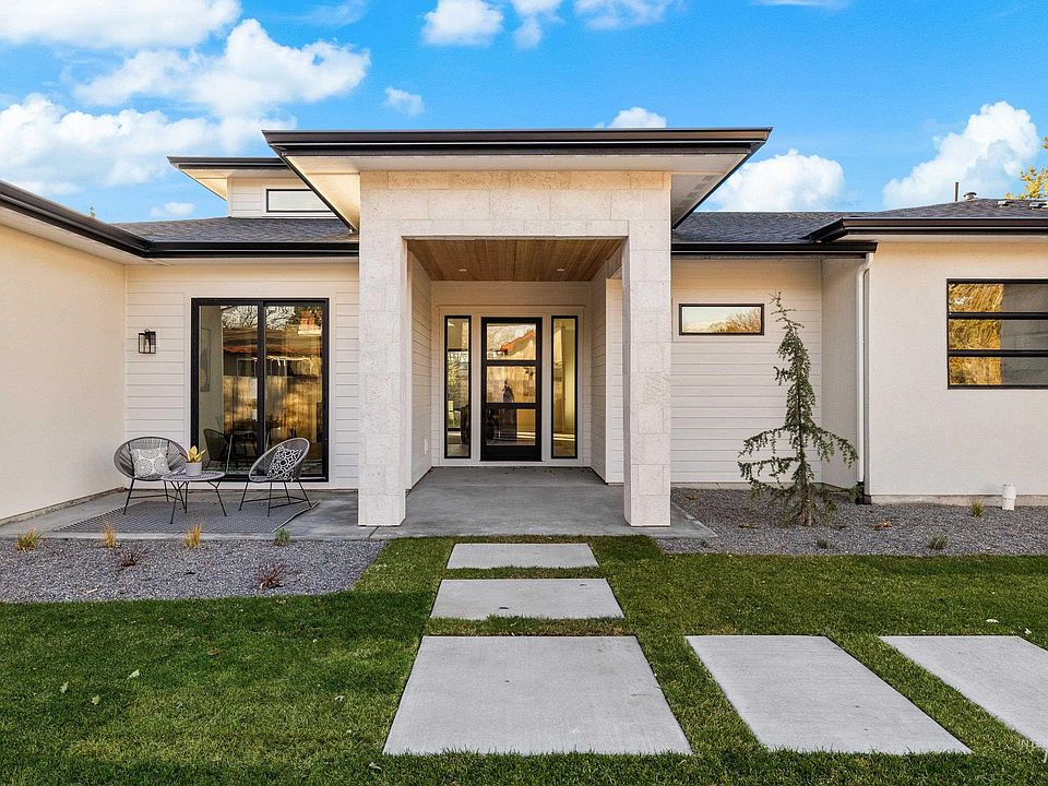 This rare, private single-level newbuild sits on over 1/4 acre, offering 2,400+ square feet of luxurious living space in East Boise. The chef-inspired kitchen features premium appliances, a spacious island, elegant quartz countertops, & soft-close cabinets and drawers. In the great room, soaring 18-foot ceilings, custom beams, & a modern stone fireplace with a stained mantel create a striking focal point. Built-in cabinetry and a cozy reading nook add warmth and sophistication. French doors lead to an office/bedroom with a private entrance from the front patio. The primary bedroom includes a spa-inspired ensuite with quartz countertops, floating dual vanities, soft-close cabinetry, & a glass-enclosed shower paired with a freestanding tub. A long paver-lined driveway leads to an oversized garage with an RV bay, offering plenty of room for vehicles, recreational gear, or a workbench. Homes & lots of this size are hard to come by! Discover why locals love and seek to live in this desirable area!