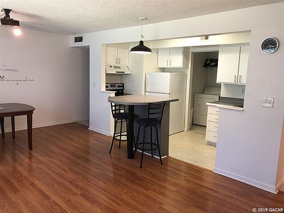 This second floor condo unit looks to the open common area of the complex, featuring 4BR/2BA w/open kitchen/dining room & living room. Each bedroom offers a built in desk, laminate and title floor. Right off Archer Road,Community features a plethora of amenities including a clubhouse with game room, fitness center, tennis, basketball and sand volleyball courts, and swimming pool. Walk to the RTS bus stop ,Just minutes from Shands, the VA, and UF's vet school.Internet included in HOA dues