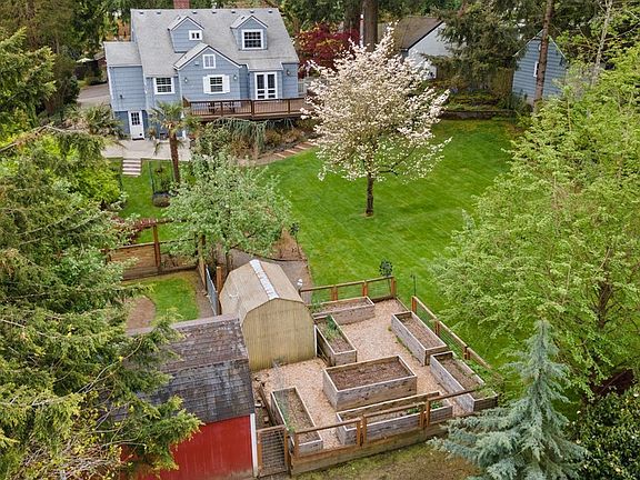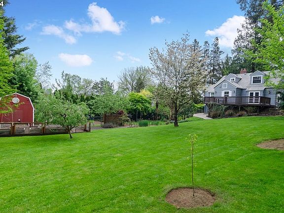Welcome to your own private retreat in the heart of Multnomah Village! This enchanting 1927 home is situated on a rare .39-acre lot less than a half mile away from the vibrant energy of the village's shops, restaurants, Arts Center, and cafes. Step inside and be greeted by the perfect blend of historic charm and modern updates. The home's interior exudes warmth and character, with hardwood and fir floors, built-ins, french doors, crown molding, glass door knobs, wainscoting, plantation shutters, a spacious remodeled kitchen equipped with a gas range, an eating bar and nook with panoramic views of the lovely backyard. The formal living room and dining room offer endless entertaining opportunities. The family room adjacent to the kitchen leads to an expansive deck overlooking the manicured property. Venture into the backyard and discover your very own mini farm, complete with a charming small barn, a tool shed, and a chicken coop. Delight in the joy of gardening as you tend to raised bed planters with a drip watering system. Enjoy fresh produce from fruit trees and bushes and you will find flowers for bouquets throughout the yard. The spacious basement with outside access is ideal for a gym, office, shop, artist's studio or storage. Equipped with two driveways and a garage, perfect for RV and/or boat storage. Imagine hosting events in the back yard and adding additional amenities such as a pool, sports court, play structure or an ADU/accessory dwelling unit (Buyer to verify). The possibilities for customization are endless! Whether you're seeking space for entertaining, relaxation, recreation, or expansion, this property offers the perfect canvas to create the lifestyle of your dreams. Lovingly maintained and updated with a new gas fireplace insert (2024), new water heater and heat pump (2022). Don't miss out on this special opportunity to own a piece of paradise. Schedule a tour today and experience the magic for yourself. [Home Energy Score = 1. HES Report at https://rpt.greenbuildingregistry.com/hes/OR10076738]