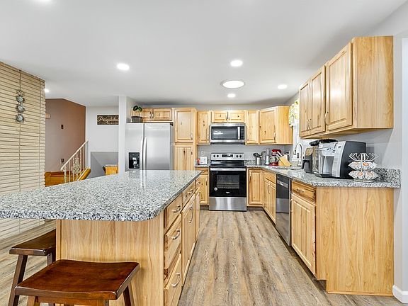 This stunning raised ranch is situated in the highly sought-after Lawrence Park area, just a stone's throw away from the picturesque lake. The house boasts three bedrooms and 3 baths, with a gorgeously remodeled kitchen featuring hickory cabinets and granite countertops. The first level boasts vinyl plank flooring, while the living area is graced with a magnificent fireplace. All the bedrooms come with hardwood flooring, and there's a sunroom with vaulted ceilings, perfect for hosting guests. The front porch has been recently updated with composite boards, and the property is situated near a lovely park with a pathway leading to the serene lake. Don't Miss this opportunity schedule your showing today!