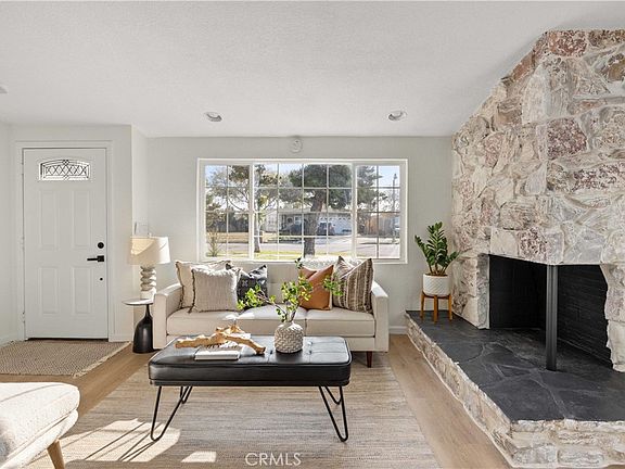 This 1956 built home has been recently updated and thoughtfully redesigned. As you step into this 3 bed/2 bath house, you’ll immediately notice a spacious living room area with decorative fireplace & vaulted ceiling. There’s brand new laminate flooring throughout, recessed lighting, and a retouched kitchen with new quartz countertops, stainless steel appliances, and gold fixtures to finish it off. Both the hallway and primary bathrooms have been refinished with new vanities, tile flooring, and quality accents for a seamless design. All three bedrooms are spacious with good closet space, new ceiling fans, and a primary that has the potential to be expanded on. The storage room has been recently drywalled to give a new owner options to create a new bedroom/bathroom or home office, or provide an opportunity to create a Junior ADU as there’s already electrical & plumbing, available. Other notable items are washer/dryer hookups inside garage, new central furnace, tankless water heater, dual pane windows, and new sliding door.