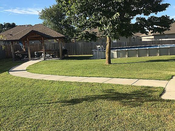 Open Sun Sept 20 from 2:00-4:00..Only 6 yrs old in Ozark West ele. 4 Bedroom (split bedroom plan) privacy fenced on cul-de-sac street with a covered pavilion surrounded with lights an area for outdoor grilling and sidewalk to house!, Approx 1/3 ac lot!Granite-style counters in the kitchen, shiplap accents, Open liv/kit floorplan with fireplace in liv room.Elevated ceilings, dark cabinetry with bar stool capability at the island. Appr 1688 SF per the builder on one level. There is a dual sink and step-in shower in the master bath with ample closet space.Buyers have right to inspections however, Seller will make no repairs.. Located just south of Fremont Hills off Fremont road with quick access to Hwy 's 65 and 160! Ready for you to decorate with your favorite fall decor and 'Call me HOME'