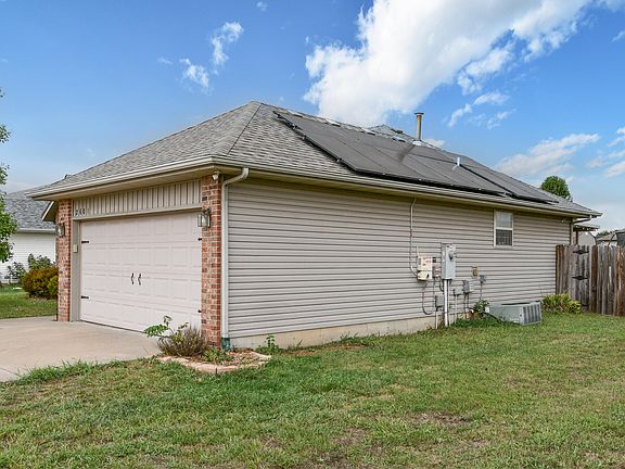 Welcome home! This beautifully maintained 3-bedroom, 2-bath home with a 2-car garage sits on a level lot in the desirable Ozark School District. Featuring elegant ceiling treatments--including a cathedral ceiling in one of the bedrooms--and a charming brick front with southern exposure, this home blends comfort and style. Enjoy the spacious patio just off the dining area, perfectly positioned on the northeast side for relaxing mornings or shaded evenings.The best part? This home comes with paid-off solar panels, drastically reducing your Liberty Utilities bill to $18 or less per month! Conveniently located west of Hwy 65, this move-in-ready home offers both modern efficiency and unbeatable savings.