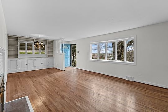 This well-maintained home sits in an ideal walkable neighborhood close to eating, shopping, and commuting. The beautiful green landscape surrounds the home and the backyard is a quiet, tranquil spot. Freshly painted walls and trim in the living room/dining room combo will greet you when you walk in the front door. The dining room has built-in cabinetry and the living room has a gorgeous stone fireplace ready to be used. Plus, hardwood flooring throughout the main living spaces, Anderson windows, and Hunter Douglas window treatments.