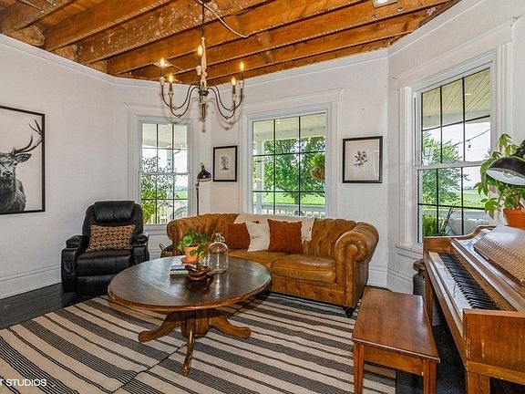 Thinking About Sustainable Farming?? This property is for you!! 57.75 acres with full set of very well loved buildings for all your needs. Large 3 bedroom farmhouse has been 90% renovated with the farming lifestyle in tow. Very nicely decorated. Large rooms with a somewhat of an open concept on the main floor. New bathrooms, new bedrooms, new insulation, new drywall, new electric. All bedrooms upstairs and one with a loft! Enjoy country views from the covered front porch and hot summer days floating in the pool. Great outbuildings include traditional 2 story barn w/new roof, 136x44 metal building, corn crib, utility barn(chicken house) & loafing shed. Approx 27 acres tillable. 21 acres of hardwoods well groomed for wildlife, 2.5 acres pastured. Certainly no disappointments here!!! Come and take a look, it won't last long.