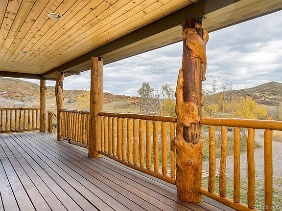 Ranchette on acreage in Oak Creek and within Steamboat school district. This fantastic home has undergone a full remodel with new flooring, carpet, paint, venetian plaster, bathrooms, and more. The inviting wrap-around porch will have you dreaming of warm evenings, taking in the views of the ski area and enjoying time with friends and family. The living room is spacious with vaulted ceilings and a loft looking over the main level and with picturesque ski mountain views. French doors welcome you into the main level master which also has access to the back yard. The ensuite master bath has been remodeled with a jacuzzi tub, double standing shower w/ bench, and granite counter tops. The basement level has 2 bedrooms and a 4th bedroom is upstairs on the 2nd floor. You'll notice fine details throughout the home including log beams on all levels and intricate tile work. Additionally, the 7 acre lot has a greenhouse that rests up a trail above the home, perfect for those who enjoy gardening.