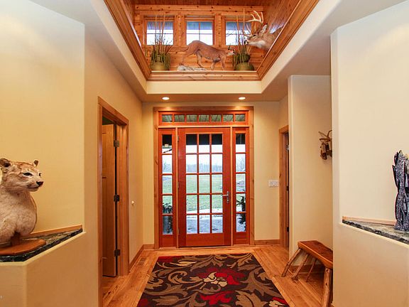 Spectacular ranch home with unique floor plan. Enjoy the wonderful views and scenery out the back with 30' floor to ceiling windows. 5 Bedrooms, 4 baths, in floor heat throughout this house and garage. Western cedar ceilings, hickory wood floors, master bath has in floor heat in shower, over 4300 sq ft plus garage has 1062 sq ft. This home must be seen to see all it offers.