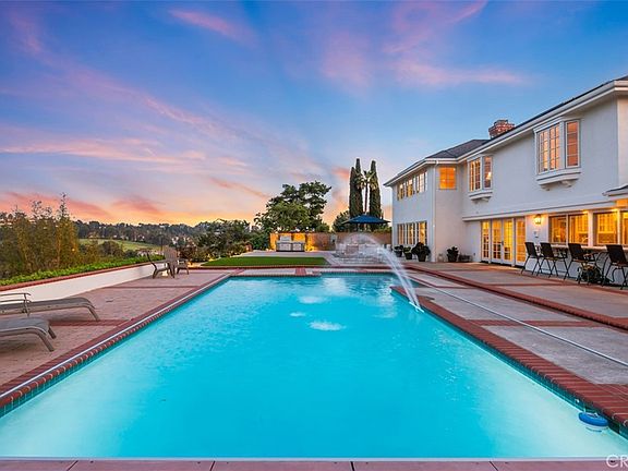 The Jewel of Mission Viejo is finally available. In the heart of Mission Viejo is a "Once in a Lifetime Opportunity" to have one of the most sought after homes in Orange County. This 4,683 sq ft, 5 bedroom, 4.5 bathroom estate has everything you would ever want in a home. On one of the larger lots, this home has beautiful curb appeal with well manicured landscape, a custom bay window with diamond cut glass, brick siding and newly painted exterior. The moment you step through the front door, you will feel the luxurious comfort this home boasts. The large Living Room features custom shelving, a large fireplace, the large bay window, and recessed lighting. Off the Living Room is the incredible Dining Room with custom molding, diamond cut glass bay window, and French doors that lead out to the back yard. The Kitchen is a must see with a gorgeous view from the sink, newer stainless steel appliances, white cabinetry, and granite counter tops. The Family Room has another beautiful fireplace, custom shelving, speakers, and French Doors that lead out to the back yard. Stepping through the doors, you will be amazed at the backyard and what it offers. An extra large pool that has been recently re-surfaced with pebbletec coating. The jacuzzi is beside the pool on the back corner. The Entertaining area is large for multiple seating areas, new turf, new custom pavers on the lower end of the lot, well maintained landscape, and views of Saddleback Mountain, Mission Viejo Country Club Golf Course, hills and neighborhoods. The Back yard is truly an amazing sight. There is a downstairs bedroom with a full bathroom. Laundry is downstairs in a separate room with a sink and countertop space. The Upper 3 guest bedrooms are very large with views of Saddleback Mountain, hills and the neighborhood.There are two separate upper full guest bathrooms that are perfect for guests. The Master Bedroom is extra large for a separate retreat and seating area, walk in closet, and Dutch door that leads to the backyard. The Master Bathroom has a separate soaking tub, walk in shower, and two separate sinks. There is an extra large 3 car garage that has new epoxy flooring and custom storage space. There is 11k W Solar with 30 panels that is owned. Close to award winning schools, restaurants, and shops. This truly is a "One of a Kind." WELCOME HOME!