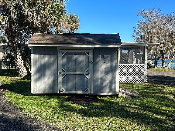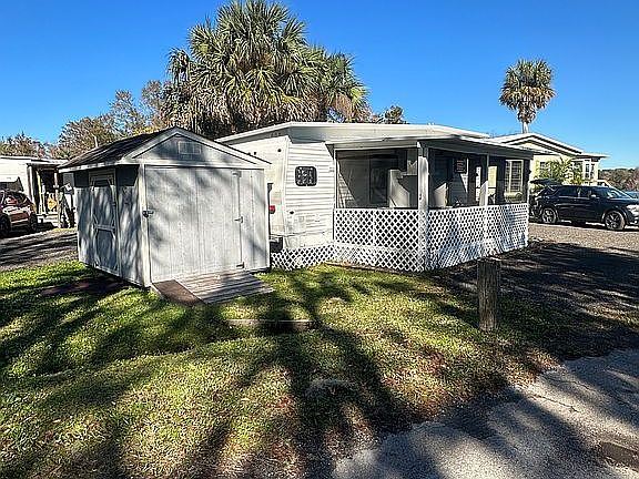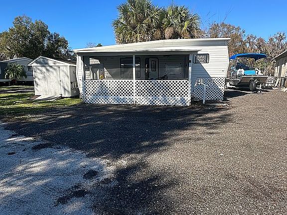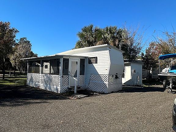 MUST SELL Step into your all-season sanctuary with this water-front Fifth Wheel home, majestically placed on the serene banks of the St. John's river, offering breathtaking panoramic views of pristine river, lush forestry and diverse wildlife directly from your home! An absolute haven for fishing enthusiasts or those who derive tranquility from mother nature. This home comprises a cozy bedroom, perfectly sized to accommodate a queen-sized bed, along with a compact, yet fully functional kitchen and dining area. The living space could fit a comfortable sleeper sofa for additional guests or a pair of plush recliners for relaxed evening, dwelling in the sounds of nature. Love SpaceX launches? The spacious front porch serves as the perfect viewpoint to watch, turning an ordinary evening into an unforgettable spectacle! Boasting a private boat dock and right beside the private ramp, whether you're a seasoned fisherman, or simply enjoy leisurely boat rides, the river awaits at the he Northern mouth of Lake Dexter. Additionally, the home includes a substantial shed for ample storage and a separate laundry room equipped for a washer and dryer, covering all your essential needs. Total of 500 sq ft with main unit, porch, shed and laundry building. This home that you purchase nestles within the charming Fish Tales RV resort, on a $800/mo rented lot, offering you not just a home, but a welcoming community and/or the privacy you may desire. Immerse yourself in a lifestyle where every day feels like a mini-vacation. Don't just visit paradise, live in it!