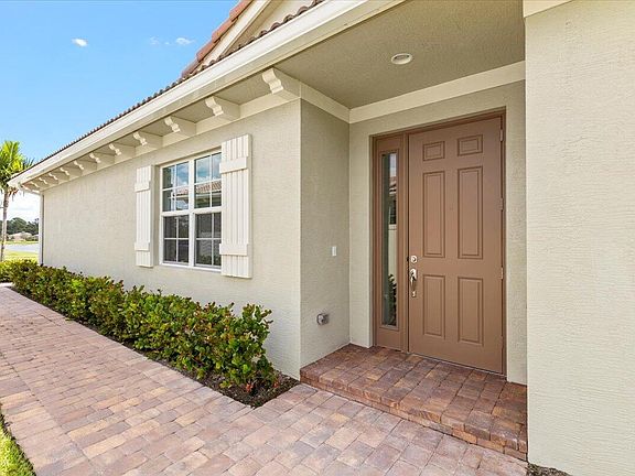 Welcome to this stunning 2 bedroom, 2 bathroom plus den home with a 2-car garage, built in 2022 and located in the highly sought-after PGA Verano. This open-concept residence features hurricane impact windows and solid concrete block construction. The kitchen features quartz countertops, a waterfall-edge island, subway tile backsplash, stainless steel appliances, and 42-inch cabinets. A private den with a door adds versatile space for a home office or guest room. Neutral 24x24 tile flows through all main living areas and the den, with carpet in the bedrooms. The bright primary suite offers dual sinks, a large glass shower, and a walk-in closet. The HOA includes access to the Talavera clubhouse, lawn care, cable, high speed internet, security, and more. PGA Verano offers resort style amenities including pickleball, tennis, fitness centers, pools, sauna, dog park, golf cart access to PGA Golf Club, and is just minutes from shopping, dining, the Mets spring training complex, beaches, boating, and Palm Beach Airport.