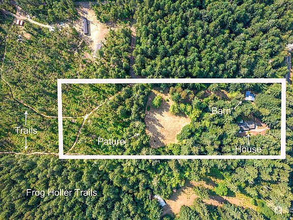 Explore this Westside Acreage Haven on 9.77 level acres, offering a sanctuary of natural beauty & rural paradise. The 1,830 sqft one-level home features 3 bedrooms, 2 baths, office, a cozy den with woodstove & covered deck! Adjacent to Frog Holler Forest with acres of trails, this secluded setting includes a 2-stall barn with hay storage plus tractor & tack rooms, perfect for hobby farmers & animal enthusiasts. Wax Orchard offers wide open spaces, black Angus cows, peony farms, stunning views of Mt. Rainier and minutes to the ferry. Nearby Lisabuela beach is perfect for swimming and stunning sunsets. This move-in ready home is ideal for passionate hobbyists, hiking and biking enthusiasts, and adventure-seeking ATV & dirt bike lovers.