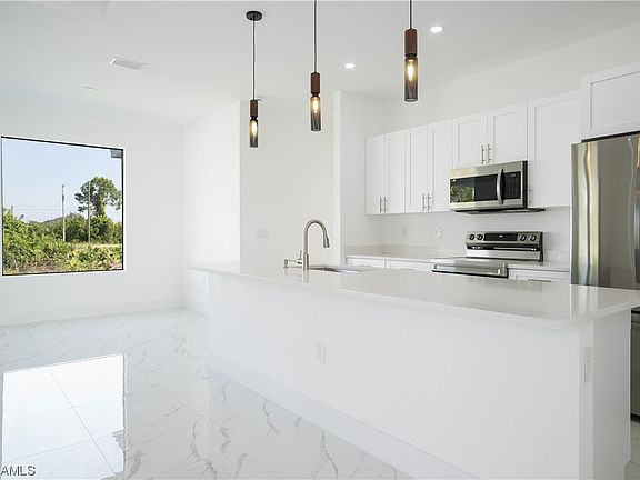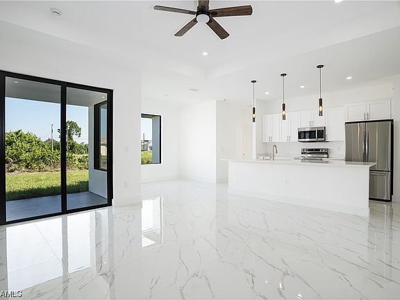 As you step inside, you'll notice the elegant touches that define this property. The kitchen is a true focal point, featuring exquisite quartz countertops that provide both, beauty and durability. The sleek stainless steel appliances not only enhance the kitchen's aesthetics but also offer modern conveniences for cooking and entertaining. The interior design incorporates a touch of wood accents throughout, adding warmth and character to the living spaces. These wooden elements create a harmonious balance with the contemporary finishes, giving the home a unique and inviting atmosphere. One of the standout features of this property is the abundance of natural light, thanks to strategically placed windows and thoughtful design. This ensures a bright and welcoming ambiance in every room. Additionally, ceiling fans have been thoughtfully installed to enhance comfort and energy efficiency. The layout is functional and spacious, with three well-appointed bedrooms. The den adds versatility, serving as a home office or guest room. The home location in the SW of Lehigh Acres provides convenient access to local amenities, schools, and parks, making it a wonderful place to call home.
