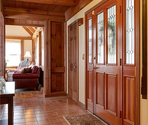 3 story contemporary home located minutes to downtown Corning & behind the campus of Corning Comm College. Enter this warm & inviting home thru the spacious front foyer, or into the mud room from the garage or 2 exterior doors. The living room has cathedral ceilings with wood beams spanning the room. Formal dining room has built-in side bar & sliding doors that lead to large rear deck. Spacious kitchen has and abundance solid wood cabinets, pantry & is open to family room. Guests can sit around the large island while you cook, or lounge in the family room that is lined with bookshelves & warmed with a wood stove. Two sets of sliding doors leads to the back deck. What a great place to entertain as we open back up from quarantine!1st floor also has a full bath, laundry room with built-in ironing board & side door leading to hot tub. 2nd floor features the sizeable owner suite which has a walk in closet, dressing room, jetted tub, stand-alone shower & sauna. 2 more bedrooms and bathroom complete the 2nd floor. The last 2 bedrooms are nestled under the eaves of the 3rd floor. Full basement with poured cement walls provide storage & a root cellar. 2 car attached garage, shed & 7.4 acres
