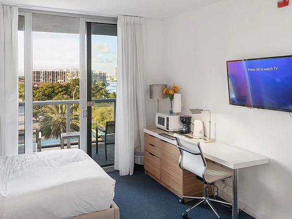 Live in luxury with a stunning water view in this fully furnished studio! Live in a highly desirable location thats a 5 minute walk from the beach, restaurants, coffee shops, grocery stores and entertainment. This stunning condo building offers everything you need in one place from a full gym, to waterfront pool, bistro, and more. Available fully furnished, month to month or short term lease 2-6 months 8th floor, all utilities included Come spend your winter months in paradise! Month to month, open to short term contract of up to 6 months Please note this unit does not have a full kitchen, there is a microwave, mini fridge, and coffee maker. Please note there is a laundromat across the street from the building. Monthly parking available in building $295/month