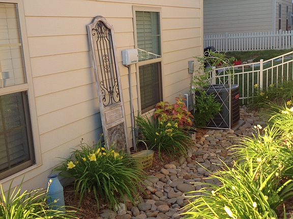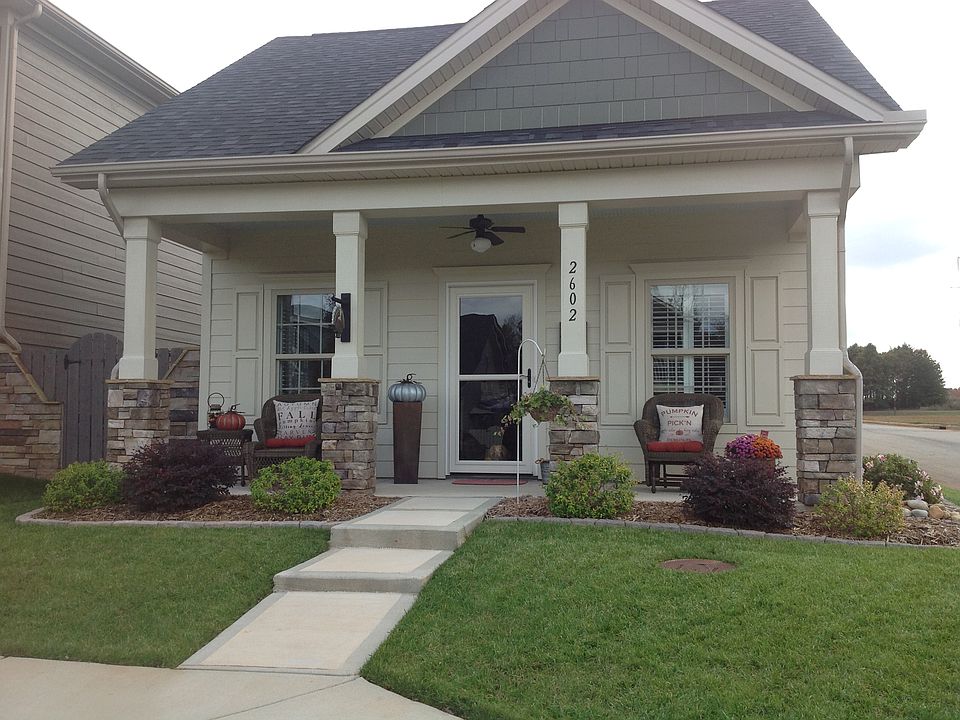 Single-story Craftsman style home on desirable end home-site. Detached two car finished garage, with remote keypad. Professionally landscaped yard with sprinkler system. Backyard is fenced with an aluminum fence. Fence is a powder coated upgrade color, to match Hardie Plank house siding. Hardwoods throughout, tile in baths and laundry room. Ceiling fans in living room and master bedroom. LED can ceiling lighting in main room. Plantation shutters in gathering area. Blinds throughout rest of home. Kenmore appliances in kitchen. Gas stove upgrade. Granite countertops in kitchen. Cultured marble bath vanities. Comfort height toilets in both baths. Oil rubbed bronze fixtures throughout. Gas log fireplace. Oil rubbed bronze outside coach lamps. Custom made awning over side entry door. Both front and side entries have fullview Larson storm doors with retractable screenaway. Alarm system.
