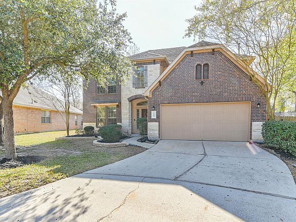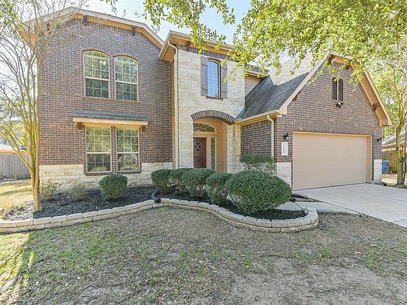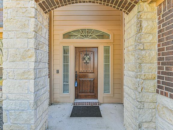 Open concept Dr Horton home is on an oversized cu-de-sac lot. The homes veneer is stone and brick, with an arced brick porch ceiling. Upgraded features include: A hole-home water treatment system, laminate flooring throughout, generator and connection system, extensive laminate flooring, new matching stainless steel appliances, custom primary closet, oversized kitchen sink. The family room and foyer have 20 foot ceilings. A corner stone accented fireplace. There are arched entries, crown molding and ceiling fans throughout the home. The kitchen is a chefs dream with granite counters, stone backsplash, chefs desk, tall cabinets with crown molding and a 5 burner gas cooktop. The primary ensuite bedroom has bay windows, soaker tub, glass enclosed walk-in shower, double sink vanity and a custom designed closet. The stairs and cat walk have wood rails and dowels. The spacious game is upstairs with the other three bedroom and a full bath. The back covered patio is idea for outdoor grilling.