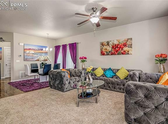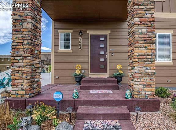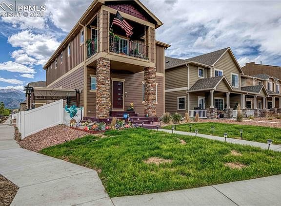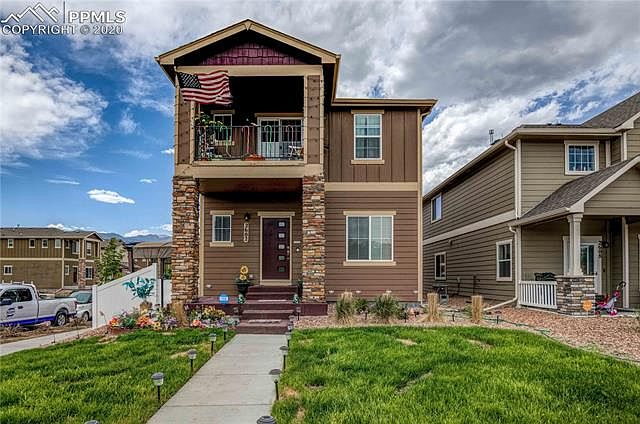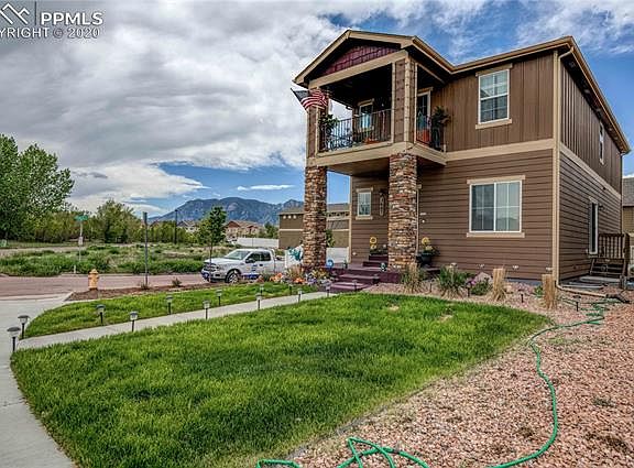 THIS IS US... Admiring the TOP DECK PATIO and the great CORNER HOMESITE, that has a great OUTLOOK of the MOUNTAINS. Entering into the OPEN FLOOR-PLAN, your eyes will catch the SPACIOUS LIVING AREA, all the NATURAL LIGHT coming thru the WALKOUT DOOR in the dining room. Enjoying the STAINLESS STEEL APPLIANCES with the shiny HARDWOOD FLOORS, GORGEOUS CABINETS and the GRANITE COUNTERTOPS that puts it all together in the kitchen. The BASEMENT is a world of possibilities, hobbies, entertainment, etc... MAKE IT YOURS! Upstairs has a COZY LOFT that leads out to the TOP DECK PATIO, enjoy that summer cool breeze. Conveniently located laundry room with ready to use WASHER and DRYER. SIZE-ABLE secondary bedrooms with WALKIN CLOSETS. The Master bedroom has ADJOINING BATH, DOUBLE SINKS, GRANITE COUNTERTOPS, LARGE WALK-IN SHOWER, WALK-IN CLOSET. The side yard is magnificent for entertaining with the PATIO COVER, so you have a great look at the MOUNTAINS. A READY TO MOVE INTO HOME!! Located close to downtown and all areas in the Springs.