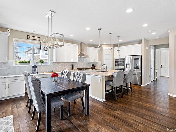 Corner lot oasis found in one of the lowest property tax communities with direct access to I25 coming soon. This pre covid built Richmond home is beautifully upgraded well beyond your expectations. Some of the most impressive features of this home are five bedrooms, professionally finished basement with an eye catching wet bar, all solid surface countertops, solid surface main floor flooring, all bedrooms, living room, and patio are prewired for ceiling fans, built in large hanging shelving in garage, low maintenance lawn with turf and covered patio. Please enjoy the professional walk through video and upcoming open houses and/or private showings.