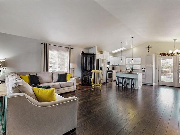 Fantastic single level home on large corner lot with charming covered front porch. Home features many new upgrades including new paint, kitchen cabinets, shelving, new slab granite counter tops, tile backsplash, laminate flooring, sinks, lighting, S/S appliances and updated bathrooms. Enjoy the spacious great room concept with vaulted ceiling and cozy gas fireplace. Stay comfortable year round with the forced air gas furnace and Central AC. Spacious master w/ good separation from other bedrooms. Large french doors open to deck w/ expansive fully fenced & landscaped back yard for living extension and entertaining. Centrally located to schools, shopping and medical facilities. This home comes with a 12 month HWA home warranty. See attached 3-D virtual tour to explore this home and floor plan. Make your appointment to see this today!