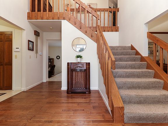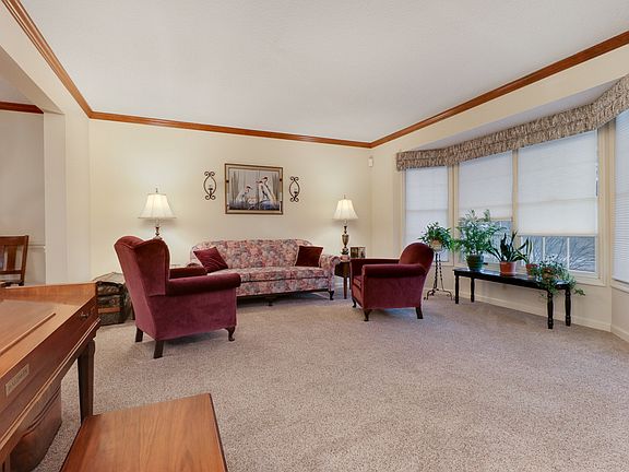 Outstanding 4 bedroom/3.5 bath home located in Eagle Ridge neighborhood. Large 2 story entryway with open staircase. Spacious main floor formal living room with bump out bay window. Dining room has newer hardwood floors. Nice eat-in kitchen features solid surface countertops, tile backsplash and island - overlooks main floor family room with warm fireplace & beautiful brick hearth. Big main floor laundry with utility sink and cabinets. 4 nice sized bedrooms on the upper level including a master with cathedral ceiling and walk-in closet. Master bath has a dual sink vanity, tub and separate shower. Partially finished basement family room, full bath, 2 extra rooms. Lots of storage and closet space. Oversized side load garage. Nice yard and front porch. Great location close to schools, shopping, parks and more!! Neat as a pin and move in ready!!