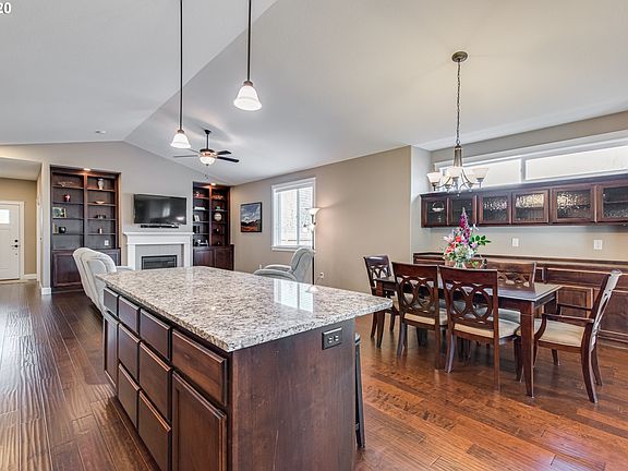 Immaculate one level in sought after quiet neighborhood. Across the street from tennis courts and walking trails, just a stones throw to two parks! Well laid out 3 bedroom and 2 bathroom home with open concept, extra large den/office as well. This custom home has upgrades GALORE! Including- over-sized concrete patio, gas hookups, custom built in buffet, built ins in living rm, high ceilings, extra lrg island, engineered HW floors, water softener, dbl ovens, sprinkler system, and SO much more!