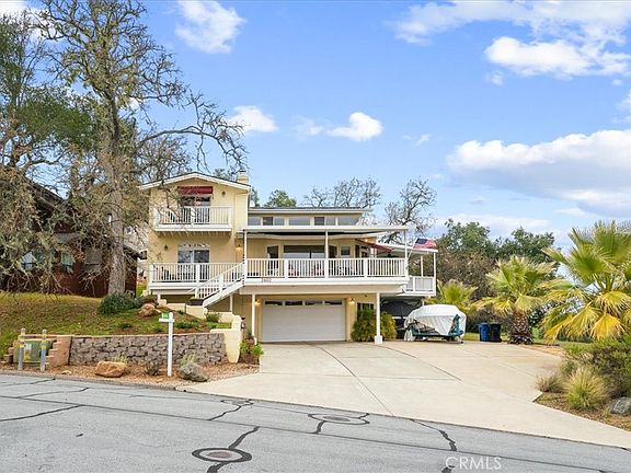 Experience the ultimate Lake Nacimiento lifestyle in this stunning 4-bedroom, 4-bathroom, 3,200 sq. ft. retreat. Nestled within the gated community of Oak Shores, this three-level home offers breathtaking lake views and a seamless blend of luxury and natural beauty. Step inside to discover a spacious Great Room with a vaulted ceiling, anchored by a cozy wood burning stove. An adjacent Library/Office/Game room and Dining area provide ample space for entertaining. Large windows flood the space with natural light, framing panoramic lake views from most rooms. Enjoy modern conveniences like surround sound and Wi-Fi-controlled window shades. The gourmet Chef’s Kitchen boasts granite tiled countertops, a center island, counter bar seating, an adjacent walk-in pantry, and stainless steel appliances, including double-bowl and triple-bowl sinks. A main-level bedroom with sliding doors opens to the backyard deck, complemented by an elegant travertine bathroom. The laundry room offers abundant storage, granite tiled counters, a sink and plumbing for a second refrigerator. Upstairs, two luxurious bedroom suites showcase breathtaking lake views and private decks. The primary suite features a grand double door entry, cathedral ceiling, a walk-in closet, and a spa-like Bath with travertine stone tile, dual sinks, a dual-head walk-in shower, plus soaking tub. A second ensuite has 2 closets and a full bath. The 1st floor provides a versatile bedroom with a private sliding door exit patio, & beautiful travertine Bath, for guests or family. Entertain or relax on the expansive wrap-around covered deck perfectly designed to maximize your enjoyment of the stunning views. The property includes an oversized 1000sf 4 car tandem garage, plus a 170sf workshop/storage area, perfect for vehicles, water toys and hobbies, plus has a mini-split heat & cool unit. Ample parking is provided by a paved driveway & carport, for RV’s and watercraft. This home is equipped with energy saving conveniences, including 30 owned Tesla solar panels with a 40kWh Powerwall battery system, a Google Nest integrated thermostat & smoke/carbon dioxide detectors, and Wi-Fi controlled B-Hyve irrigation. Oak Shores, known for the natural beauty of the lake, it's abundant wildlife, breathtaking night skies, & amenities-- marina, 2 launch ramps, boat slips, clubhouse, pool, campground, pickleball, basketball, mini golf and hiking trails. private guard gate, plus many activities.