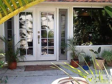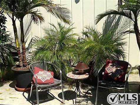 Hard to find, 1 story condo with NO ONE above you! Back yard has a nice sized patio with an orange and a lemon tree, 2 car garage, end unit! Updated bathroom and kitchen tile and granite countertops. Terrazo floors! Beautiful French door!