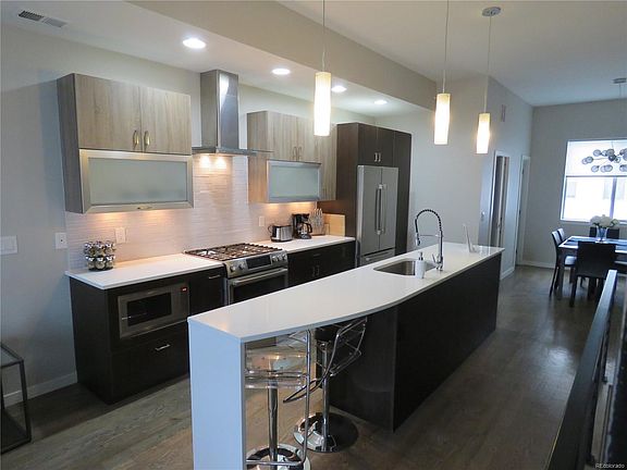 Fabulous Jefferson Park Rowhouse! Unique features: higher-end finishes, upgraded flooring, modern cook's kitchen with island seating, south facing (sunny and bright!), stunning unobstructed mtn and city views! (not looking into other condos) Pristine condition! (no work to be done here, just move in and enjoy) Open floor plan includes a large dining area and living room with fireplace. A main-floor balcony for your gas grill (direct hookup) off the kitchen, with views of dwntwn Denver. 2nd level has 2 bds, both with generous en suite bths. The views from the 400 sqft 3rd story rooftop deck are outstanding; Colorado sunsets over the mtns, fireworks from Bronco stadium, and Denver city lights! Perfect for a gathering of friends and family, or a relaxing oasis to enjoy in peace. 1 block to Jefferson Park and award-winning brewpub; wonderful walkable neighborhood packed with restaurants, gym options, entertainment galore, walk to downtown! Short and long term leasing acceptable.