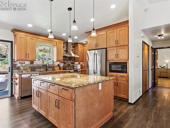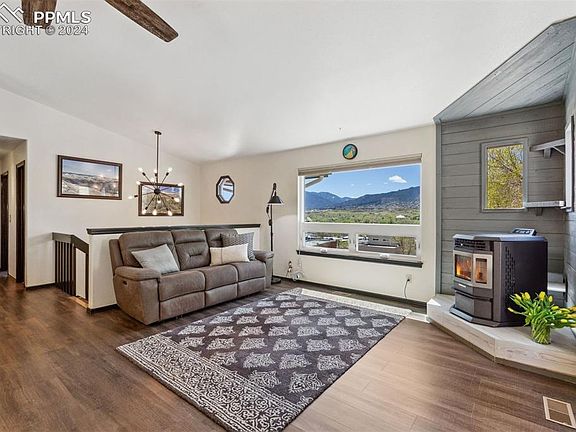Experience the ultimate in Westside living with this phenomenal 4 bed, 3 bath home nestled in the historic Old Colorado City. Enjoy breathtaking views of Pikes Peak and the Front Range while relishing the convenience of superb walkability to a variety of boutiques, restaurants, bars, Bancroft Park, and seasonal entertainment. Just minutes away from Manitou Springs, Downtown Colorado Springs, plus all the hiking and biking trails you love, this home offers the perfect blend of convenience and tranquility. As you approach, you're greeted by a welcoming covered entryway. An open and bright Great Room awaits you on the upper level. Vaulted ceilings, a large picture window, and an efficient pellet stove set the stage for cozy evenings. The adjacent gourmet kitchen showcases a large island, granite countertops, beautiful custom maple cabinetry with ample storage, and high-quality Bosch appliances, including a 5-burner gas range with an exhaust fan. The dining space seamlessly flows to a private backyard boasting a good-sized composite deck. On this level, you'll also find a spacious Primary Bedroom featuring a walk-in closet and en suite full bath with an artisan-crafted wood countertop and dual vanity with vessel sinks. An additional bedroom, full bath, and storage closets complete the upper level. Luxury plank flooring graces every inch of this home, adding style and durability to the space. Venture downstairs to discover two more bedrooms with an adjoining full bath, offering flexibility and privacy for guests. The lower level also grants access to an attached oversized 2-car garage, providing plenty of room for a workbench and added storage. Outside, the fully landscaped yards beckon with terraces filled with perennial plants, raised garden beds, and a charming chicken coop complete with city chickens (Included if city chickens are your dream!). Wake up to the joys of fresh eggs, coffee, and strolls around town, embracing the true essence of Westside living.