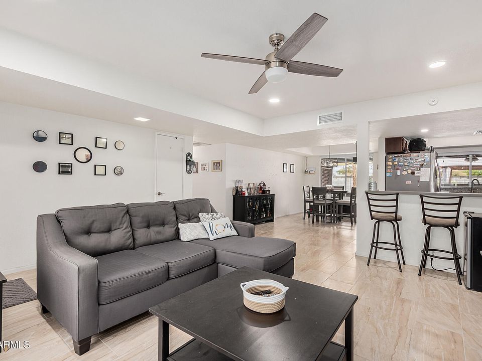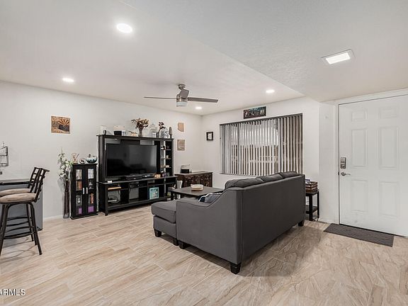 This stunning 4-bedroom, 2-bath home is move-in ready with no HOA! Featuring an RV gate and parking, the low-maintenance front yard welcomes you into an open, bright, and spacious living and dining area. Lovely neutral stone tile flows throughout, while the kitchen boasts stainless steel appliances and a stylish subway tile backsplash. The inviting family room is accented by charming wooden beams and a cozy fireplace. The primary suite offers a spacious retreat with an updated ensuite and a large walk-in closet. Step outside to your private backyard paradise, complete with a sparkling pool, lush landscaping, and ample seating—perfect for entertaining!