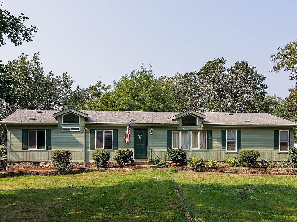 Close in country with peak-a-boo view of Fern Ridge Lake. Fabulous 4+ bedroom & 2.5 bath, approx 1780 sq ft, on .48 acre (two lots)Nicely updated & freshly painted.Beautiful Newer engineered hickory floors & cabinetry & granite tile. Feature vaulted ceilings & Skylights for light filled living. Spacious yard for gardening or play with apple & plum trees. Newer Trex deck. New partial vinyl fencing,12x14 covered storage/shed.