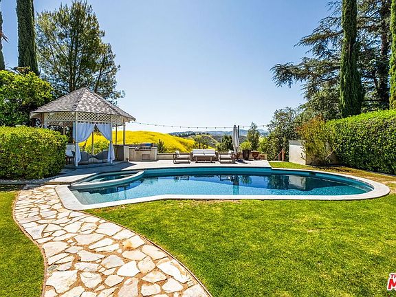 Now offered at a compelling new price! This inviting hilltop retreat blends modern comfort, high-efficiency upgrades, and indoor-outdoor living at its finest. Beautifully updated and thoughtfully designed, this 4-bedroom, 2-bathroom home includes a versatile bonus room and an open-concept layout ideal for everyday living and effortless entertaining. Accordion glass doors span the entire back of the home, creating seamless flow to your private backyard oasis featuring a sparkling heated pool, spa, built-in firepit, BBQ area, and tranquil views of the open space preserve. Enjoy the peace of mind and cost savings that come with a fully owned solar system with two batteries, plus a 220V electric car charger already installed. Located within the top-rated Las Virgenes Unified School District, this home offers space to grow, room to relax, and a setting designed for making lasting memories - inside and out. This one's easy to love.