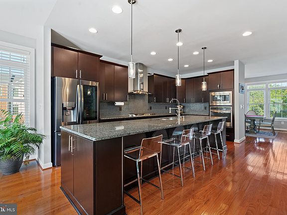 Welcome to this stunning 2-sided brick end unit townhome with 3 finished levels with over 3,200 sq/ft, 4 bedrooms, 3.5 bathrooms and 2-car garage! Upgraded throughout, this beauty features open floor concept, hardwood floors in foyer, main & upper level and staircases. Large kitchen on the main level offers an expansive center island with pendulum lighting, 42” cabinets, granite counter tops, backsplash and stainless steel appliances and overlooks the large family room area with access to the large trex deck for all of your outdoor entertaining and barbecues! There is also a separate dining room right around the kitchen. The upper level features 3 spacious bedrooms, 2 full bathrooms and laundry room. The spacious primary bedroom includes 1 large walk-in closet with custom built-in shelving and an en-suite full bathroom that includes dual granite vanity and large separate shower. The lower level has a 4th bedroom/office and the 3rd full bathroom with a walk-out to the back yard. Conveniently located, close to major commuter routes, shopping and restaurants. Lots of guest/visitor parking and walk to Buffalo Trail Elementary!
